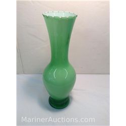 Tall Hand Blown Green Cased Glass Vase (15" high)