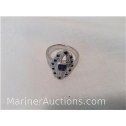 Sterling Silver Ring With Genuine Sapphires (Size 8.75)