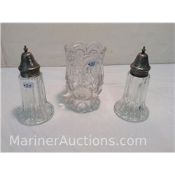 Very Old Pressed Glass Salt, Pepper and Spooner