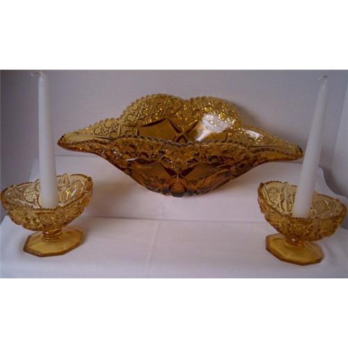 <tr><td>Title:Tiara Amber Color Console Bowl & Candle Holders</td></tr>