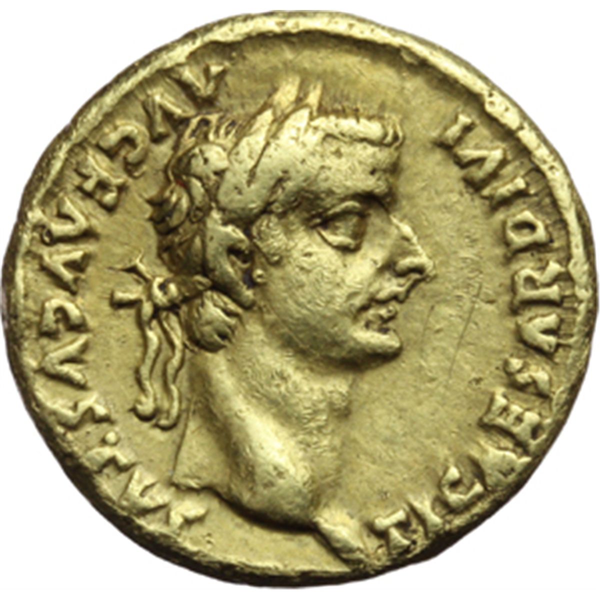 Impero Romano. Tiberio (14-37). Aureo, Lugdunum. D/ TI CAESAR DIVI AVG F AVGVSTVS. Testa laureata a destra. R/ PONTIF MΛXIM. Livia come Pax seduta a destra tiene scettro e ramoscello d'olivo. RIC 29. BMC 46. AU. g. 7.74 mm. 18.00 R. Bel BB/BB+.