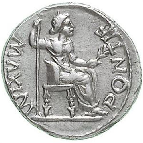 Roman Empire Coins. Tiberio (14-37). Denarius, Lugdunum. D/ TI CAESAR DIVI AVG F AVGVSTVS. Testa laureata a destra. R/ PONTIF MAXIM. Livia, come Pax, seduta a destra, tiene scettro e ramoscello d'olivo. RIC 60. gr. 3.65 AG. SPL. Esemplare molto attraente, con magnifico ritratto in alto rilievo.