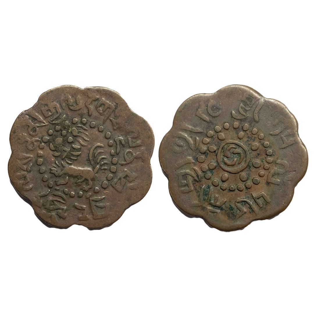 Tibet, Autonomous Tibetan Issue (1642-1959 AD), Copper 7½ Skar, 3.70 gms, Year 15-54 (1920), struck on a eight-lobed flan, KM Y# 20, very fine+, rare.