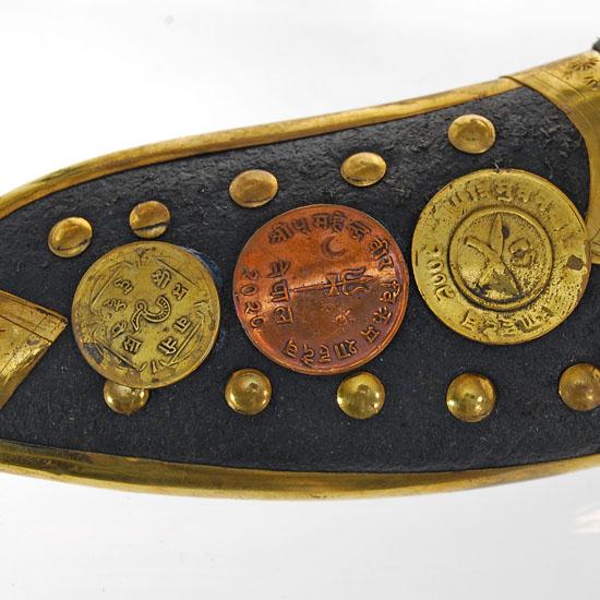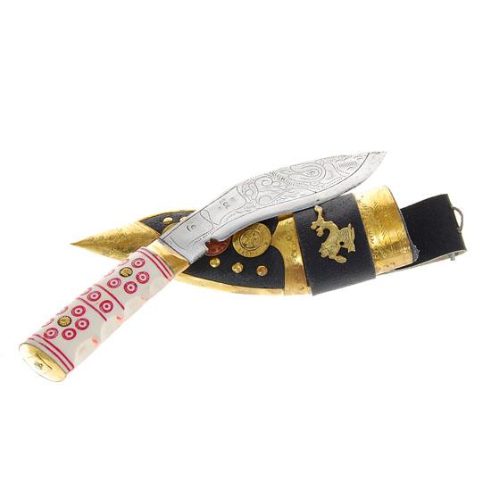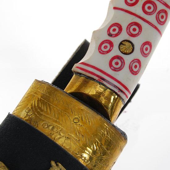 Excellent piece with steel blade bone handle and gold plated scarab ornaments, 12"