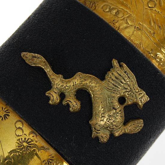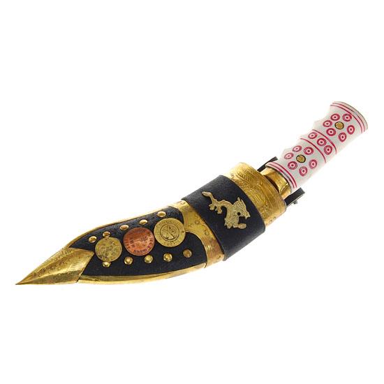 Excellent piece with steel blade bone handle and gold plated scarab ornaments, 12"