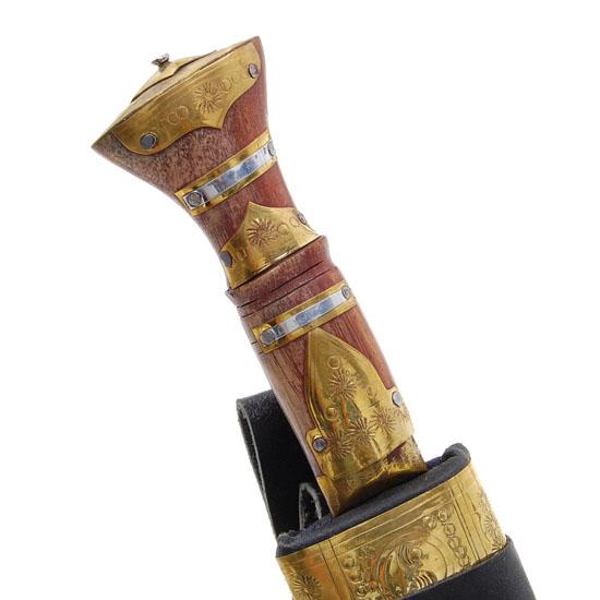 Excellent piece with steel blade and gold plated scarab ornaments; 12"
