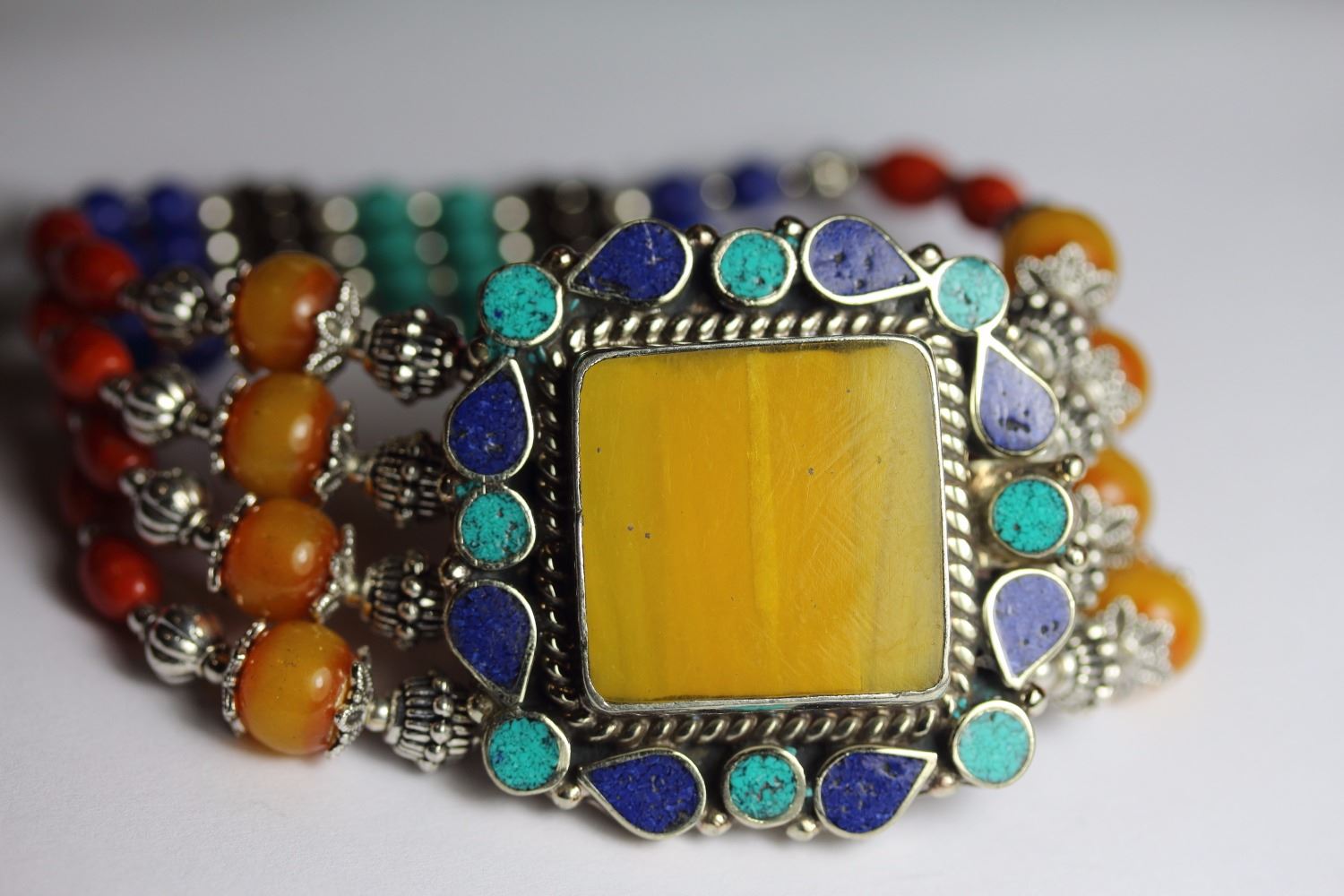 Tibet Hand Made Amber, Coral, Lapis Lazuli Bracelet