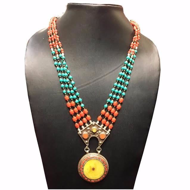 Tibet Natural Stone Hand Made Turquoise, Coral Necklace.......;This elegant large Necklace was handcrafted in Tibet, the home of exquisite jewelry craftsmanship. It was skillfully made with large natural Turquoise, each in a deep Tibetan Silver setting. and balance the design perfectly. Turquoise is used virtually worldwide for jewelry making, and is highly prized for its brilliant colors, which vary from mine to mine. The distinctive webbing patterns and variations of color in the stones on this wonderful piece are typical of the natural Turquoise found throughout much of the Himalayan region, where Turquoise has been used in jewelry-making since centuries.”””Note- All stones in this necklace are Natural.....Guranteed....Vintage look but necklace is brand new.