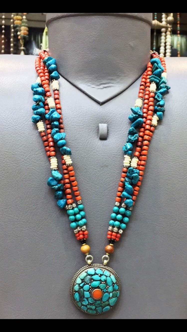 Tibet Hand Made Natural Turquoise & Coral Necklace