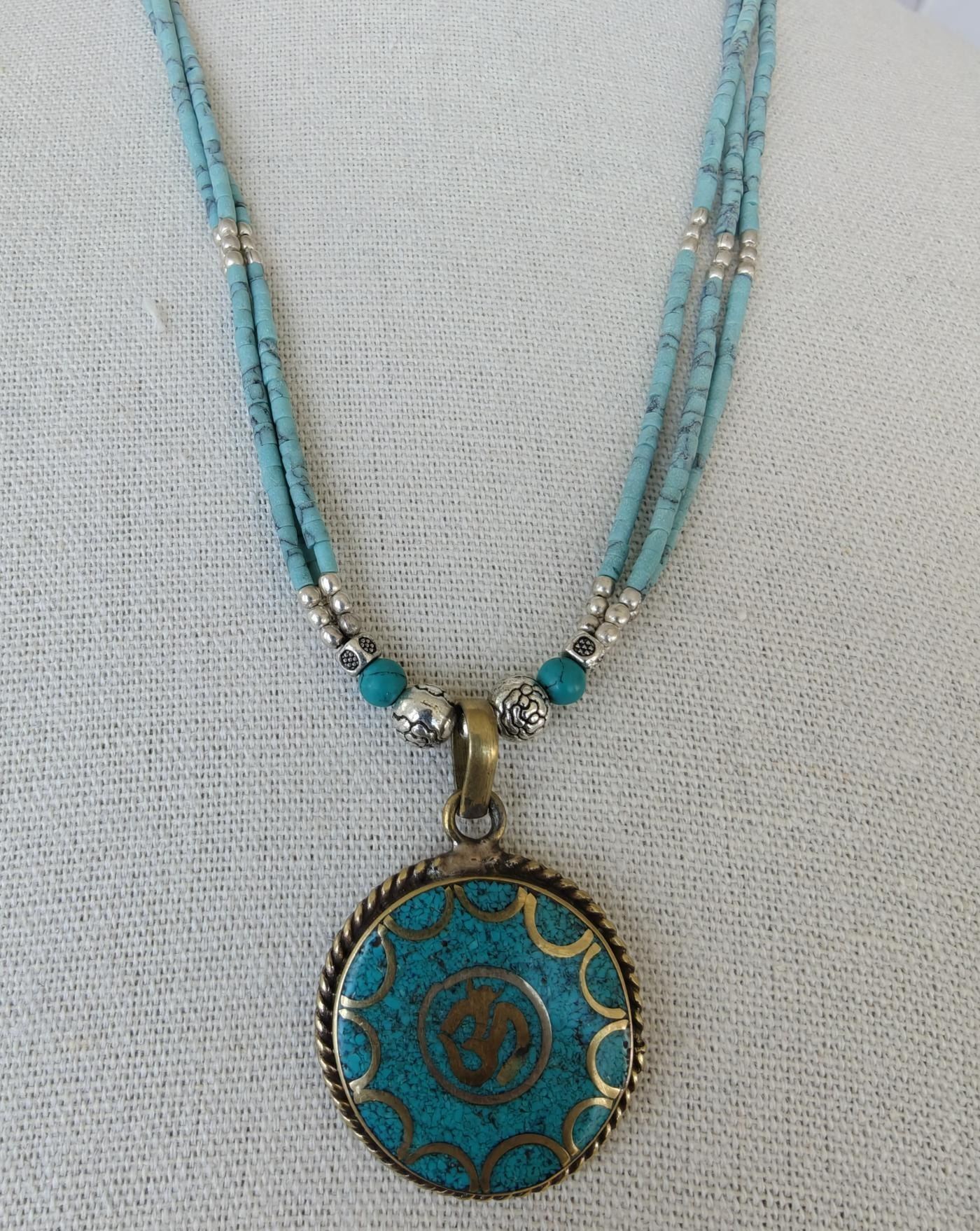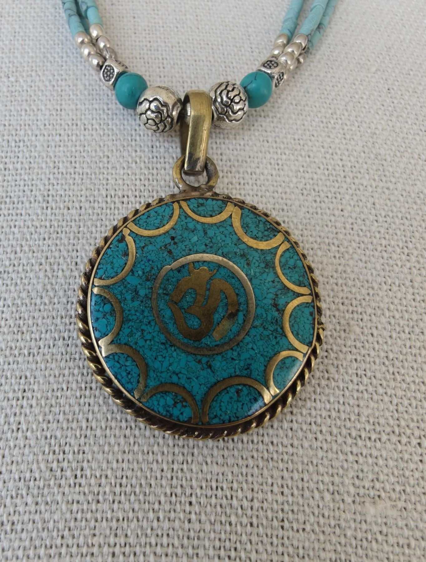Tibet Hand Made Natural Turquoise Necklace .....This elegant large Necklace was handcrafted in Tibet, the home of exquisite jewelry craftsmanship. It was skillfully made with large natural Turquoise, each in a deep Tibetan Silver setting. and balance the design perfectly. Turquoise is used virtually worldwide for jewelry making, and is highly prized for its brilliant colors, which vary from mine to mine. The distinctive webbing patterns and variations of color in the stones on this wonderful piece are typical of the natural Turquoise found throughout much of the Himalayan region, where Turquoise has been used in jewelry-making since centuries.