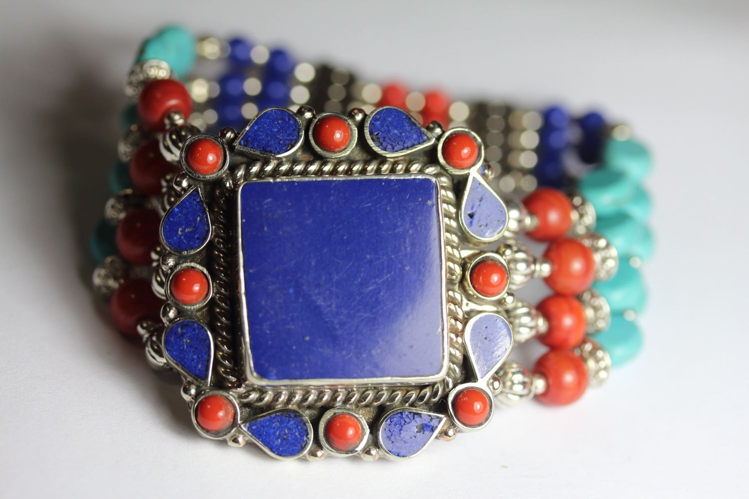 Tibet Hand Made Turquoise, Coral, Lapis Lazuli Bracelet