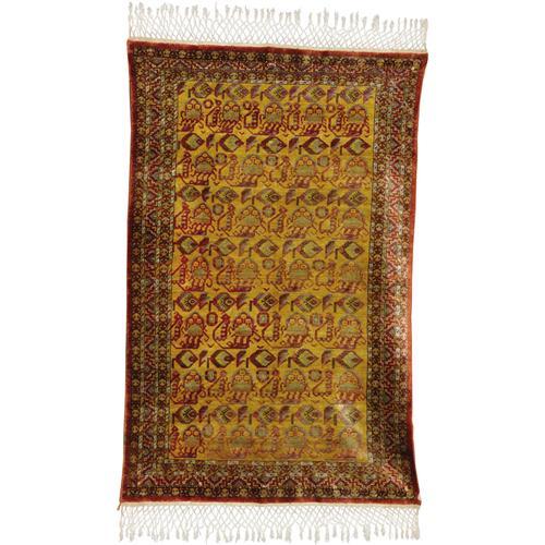 <B>A Fine Chinese Silk Rug</B></I><BR><BR>Chinese<BR>Circa 1920<BR>Silk, wool<BR>94.5 inches x 60.25 inches<BR><BR>Tibet silk with fine all-over design. <B>Condition Report:</B> Good condition.<BR><BR><b>Shipping:</b> Requires 3rd Party Shipping (<a target="_blank" href="http://www.heritageauctions.com/common/shipping.php">view shipping information</a>) <BR><BR><B>Imp