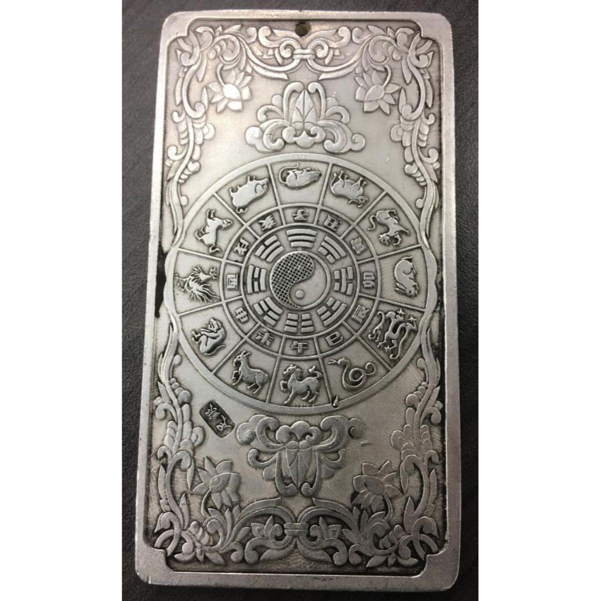 A Tibetan Silver Bullion Depicting The Year Of The Dog Landscape Design In Work Relief. This Bullion Is On Of The 12 Zodiac In The 12 Piece Series. Weighing 136g.