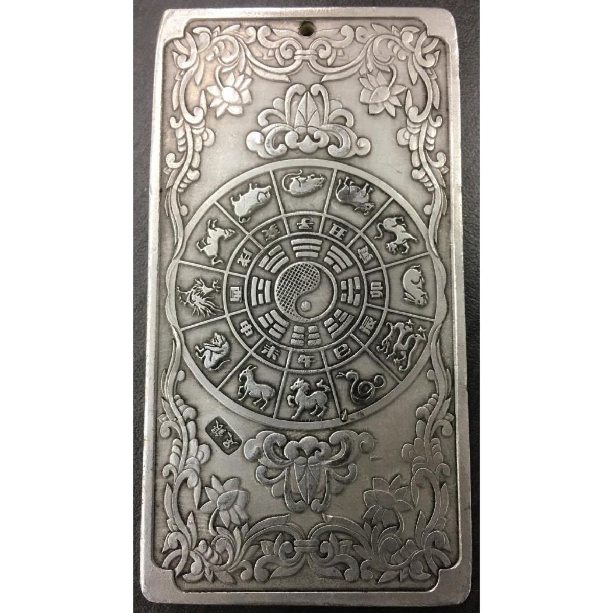 A Tibetan Silver Bullion Depicting The Year Of The Ram Landscape Design In Work Relief. This Bullion Is On Of The 12 Zodiac In The 12 Piece Series. Weighing 130g.