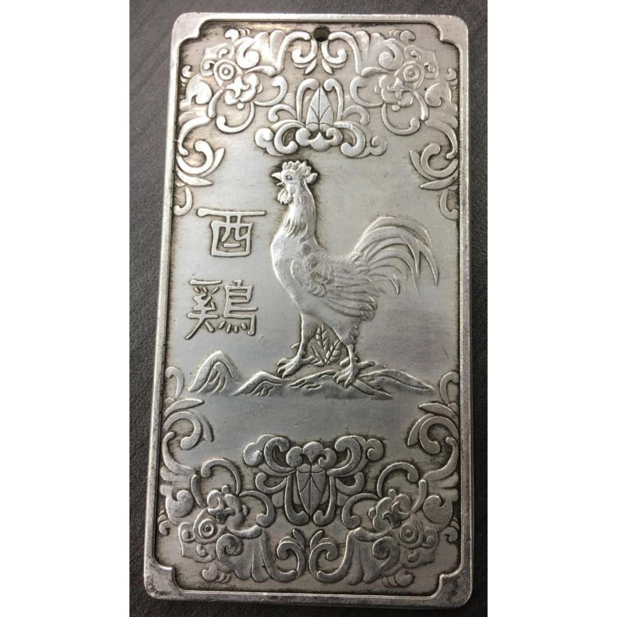 A Tibetan Silver Bullion Depicting The Year Of The Rooster Landscape Design In Work Relief. This Bullion Is On Of The 12 Zodiac In The 12 Piece Series. Weighing 130g.