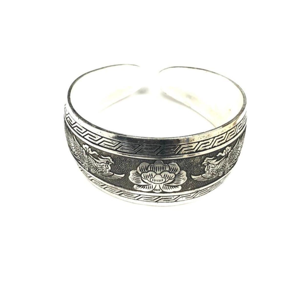 Tibetan Silver Floral & Phoenix Decorated Bangle. The Phoenix, In The Culture Of China, The King Of All Birds Of High Virtue And Grace. View Photos For More Details.Â