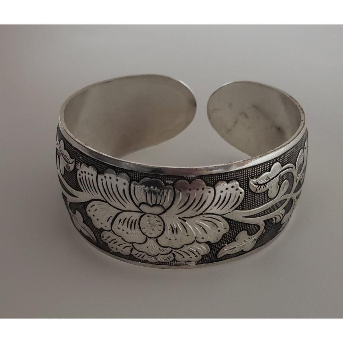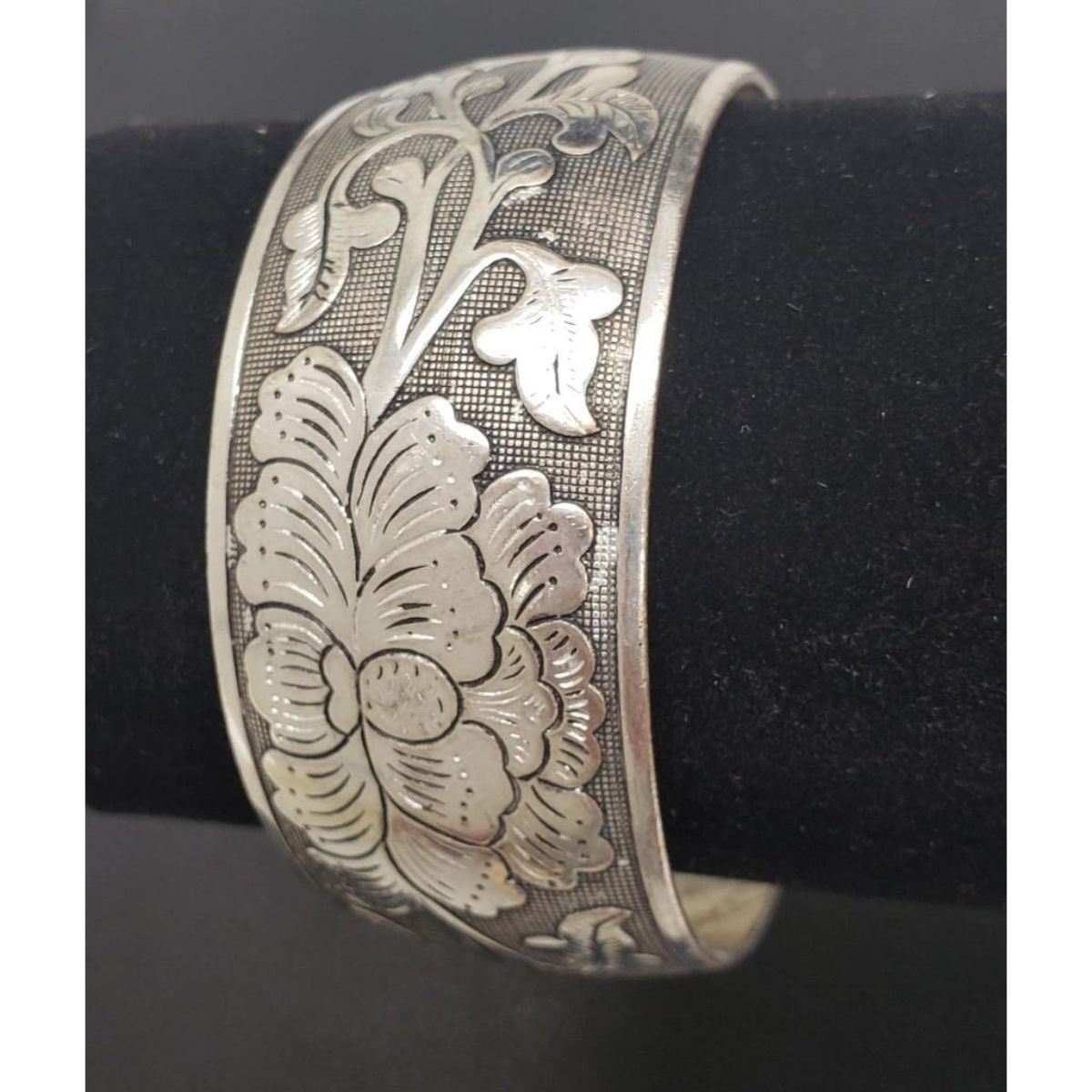 A Tibetan Silver Ladies Bangle Decorated In Etched Design. View Photos For Further Details.