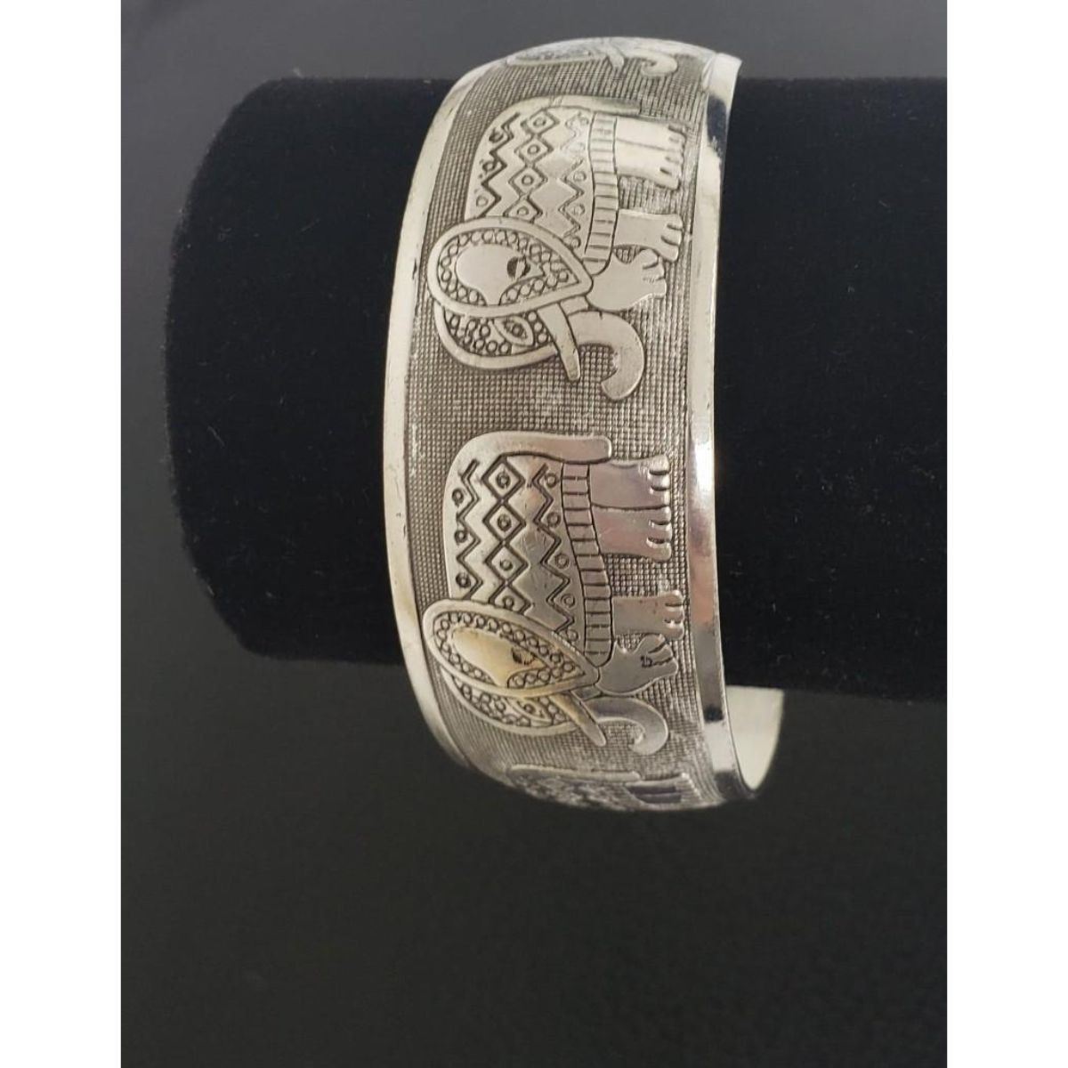 A Tibetan Silver Ladies Bangle Decorated In Tribal Elephants. View Photos For Further Details.