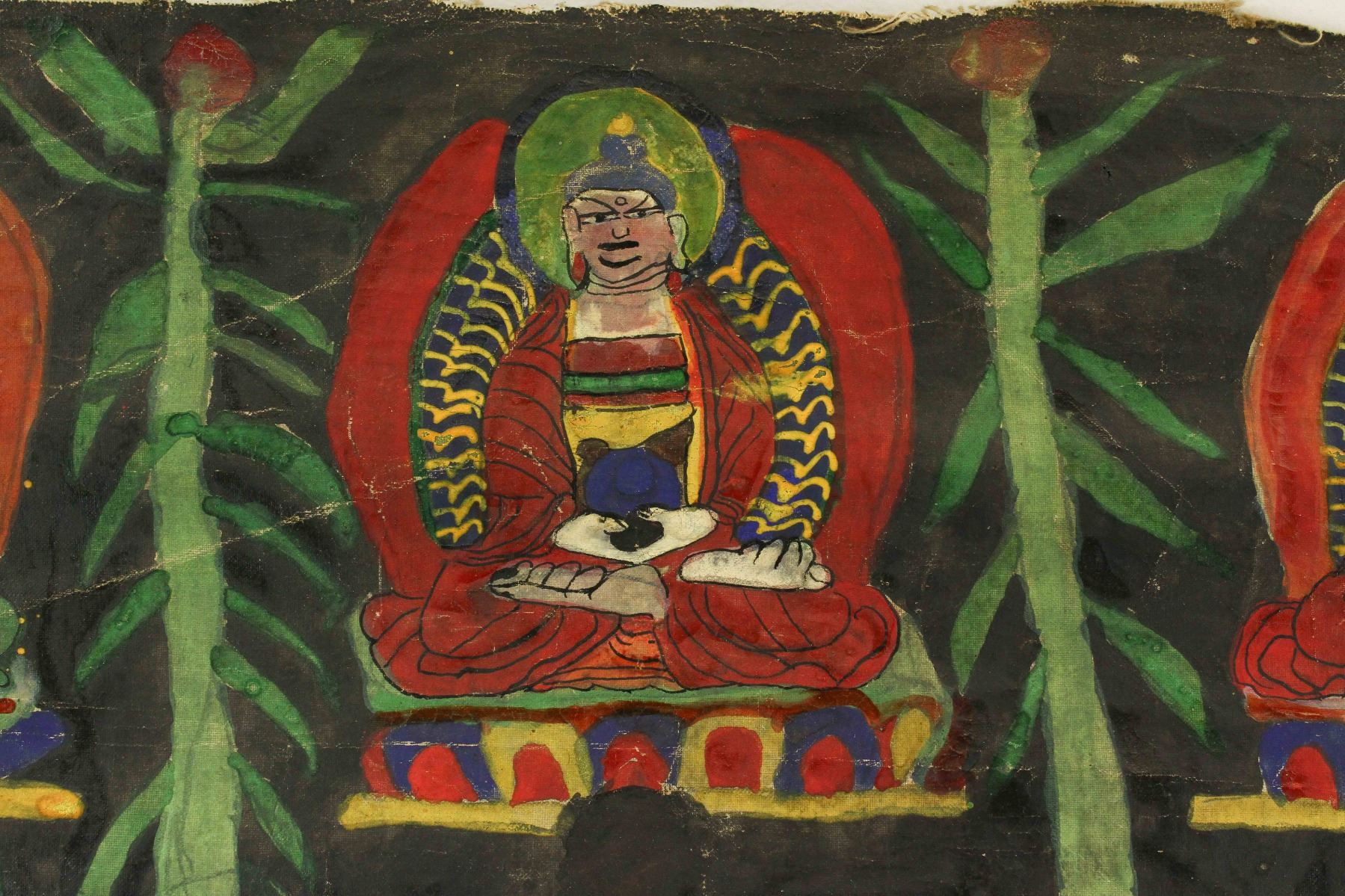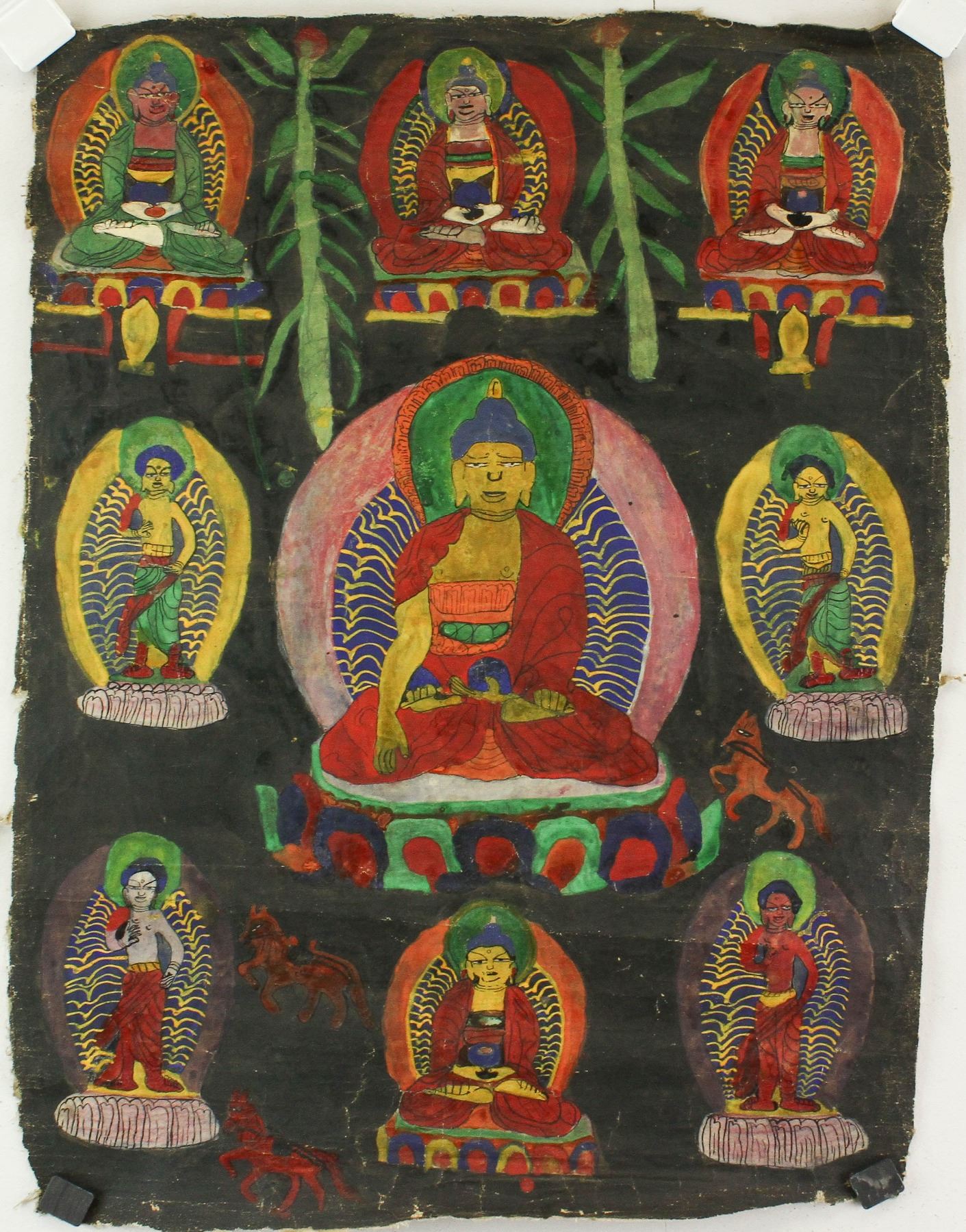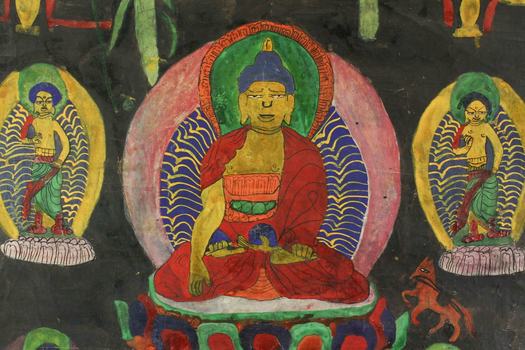 Buddhist scene; Tibetan Buddhist tanka (thangka) painting on canvas; 46 cm x 64 cm