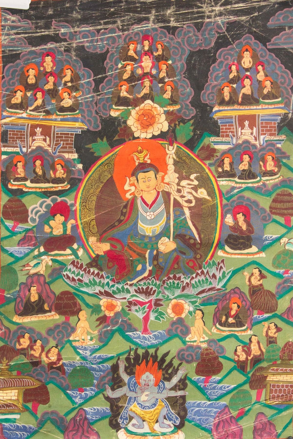 Tibetan tanka painting of guru (master); pigment on canvas; 52 cm x 35 cm