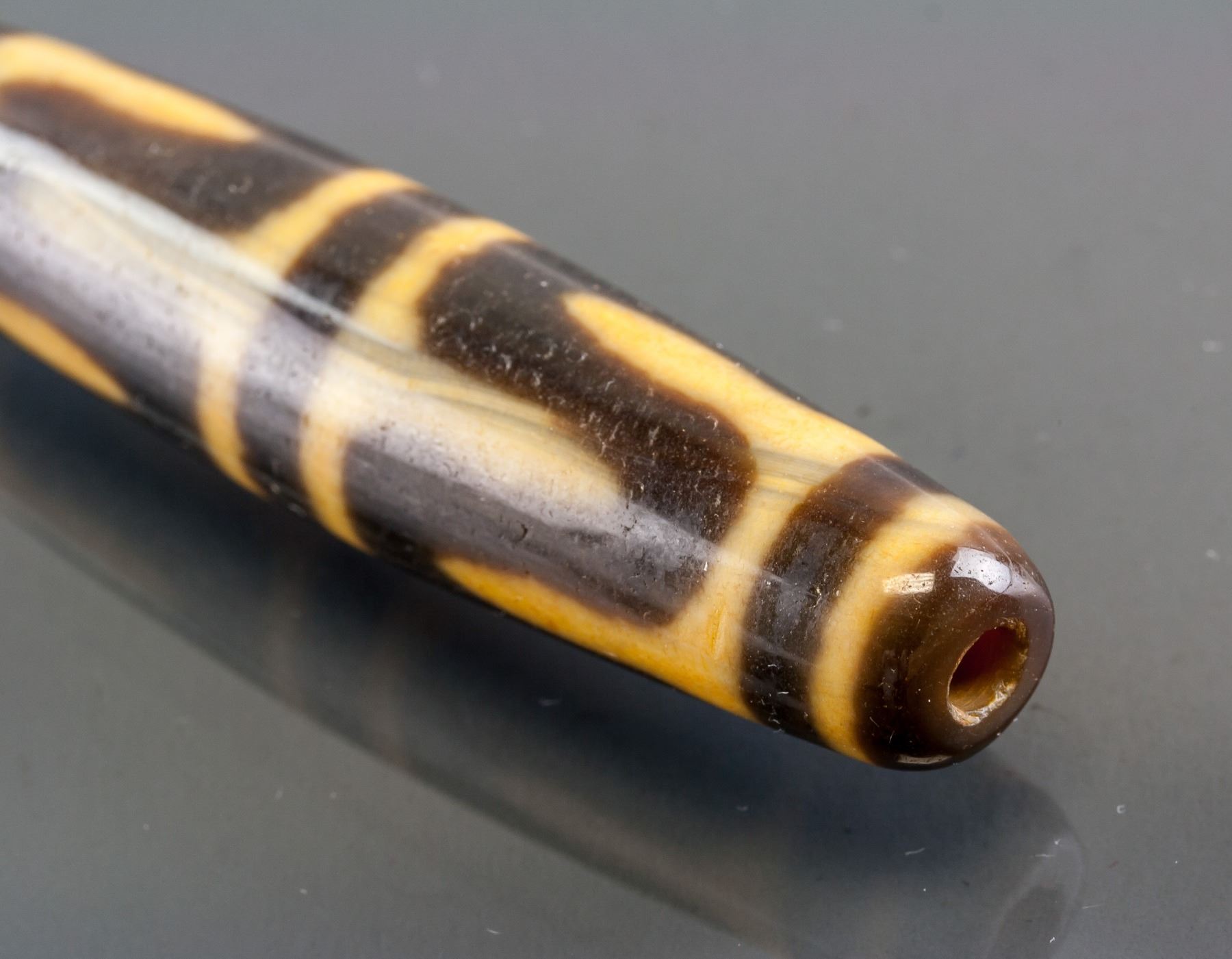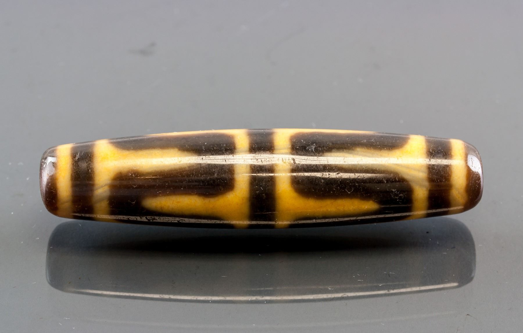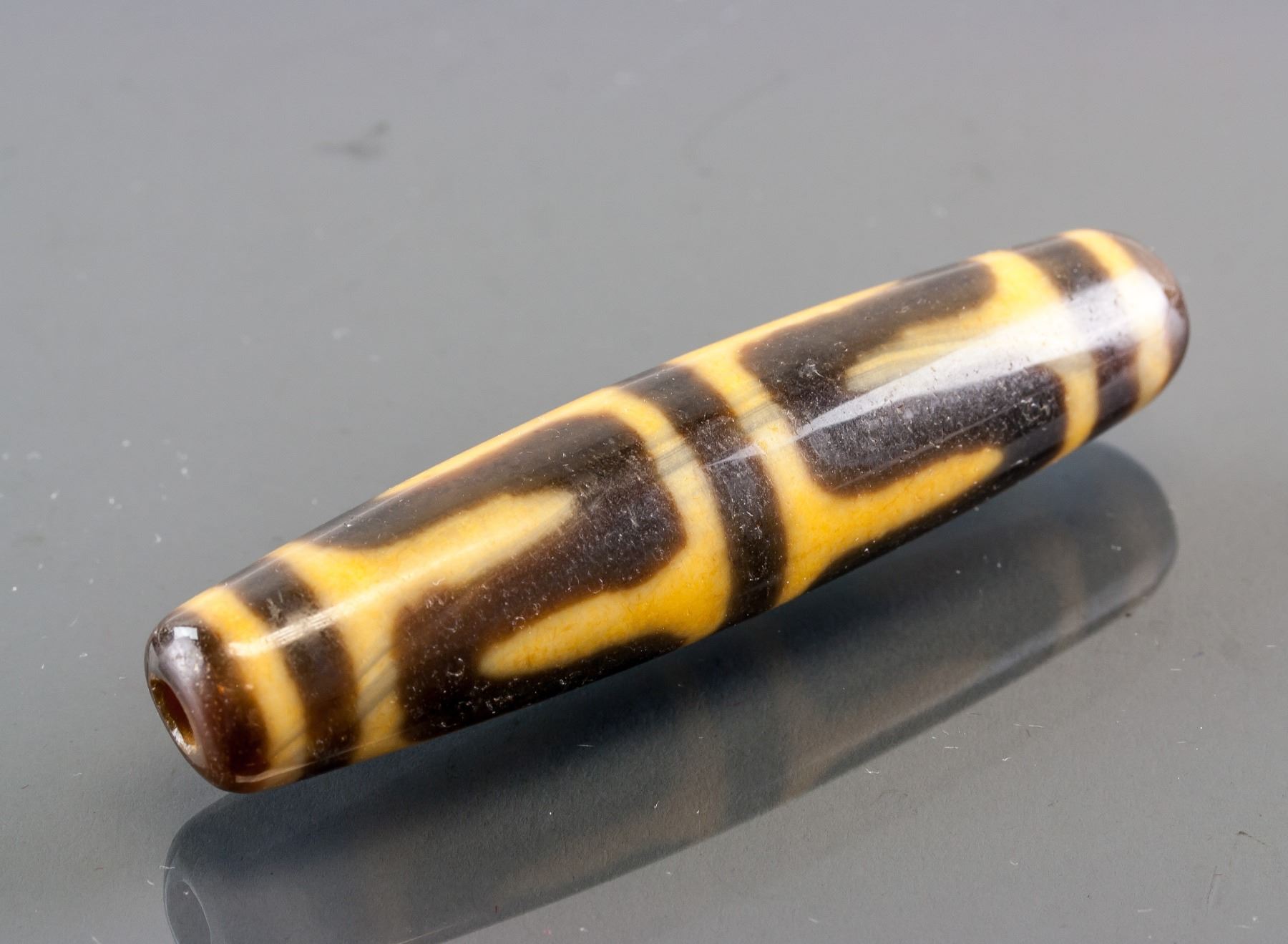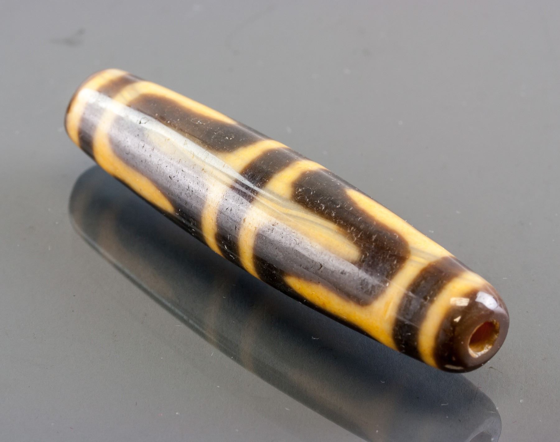 Tibetan Tianzhu bead, of oval shape, pierced through for suspension, L: 7 cm, D: 1.5 cm, 24 grams