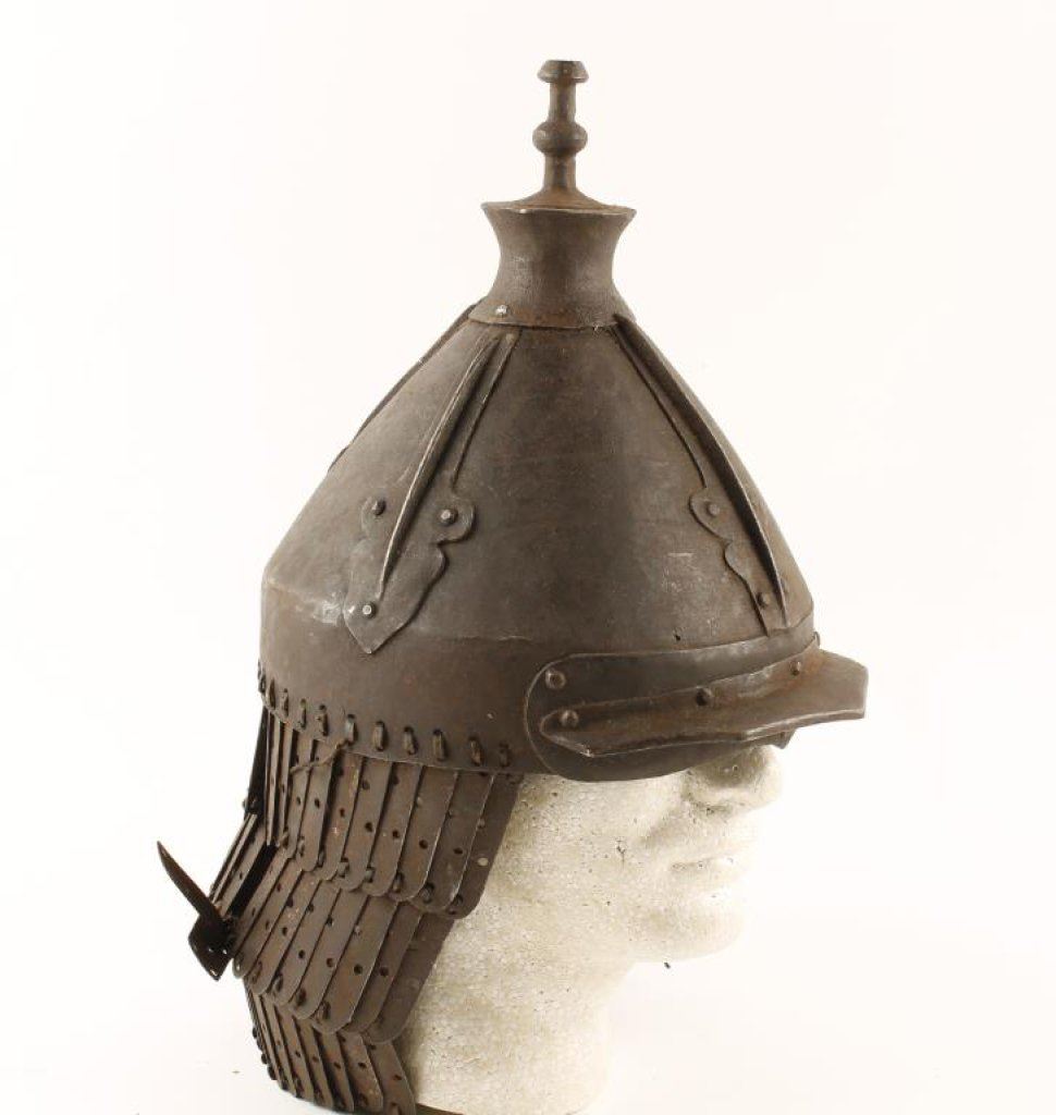 Tibetan or Chinese style helmet with forged iron links and plates; made same way from 17th to 20th Century; age not warranted. Est.: $900-$1,800.