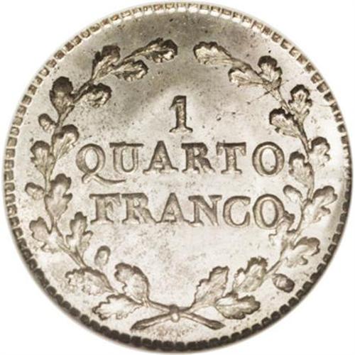 <B>Ticino. 1/4 Franco 1835, </B></I>KM7, MS65 NGC, lightly toned and fully original, very attractive.