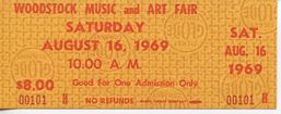 You are bidding on an original ticket to the Woodstock Music and Arts Fair, dated Saturday, August 16th, 1969. This item comes with a Certificate of Authenticity guaranteed for the life of the piece.