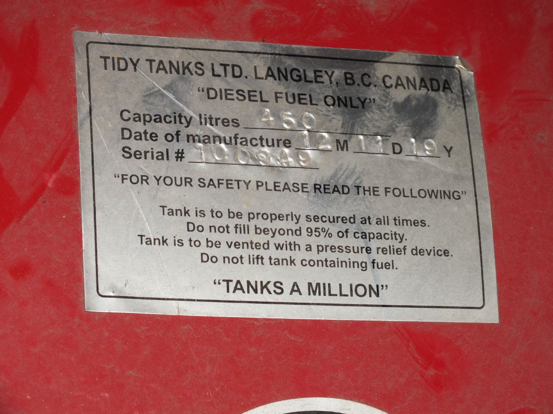 Tidy Tank w/ Fill-Rite Pump, in good working condition, 450 liter tank capacity. Used