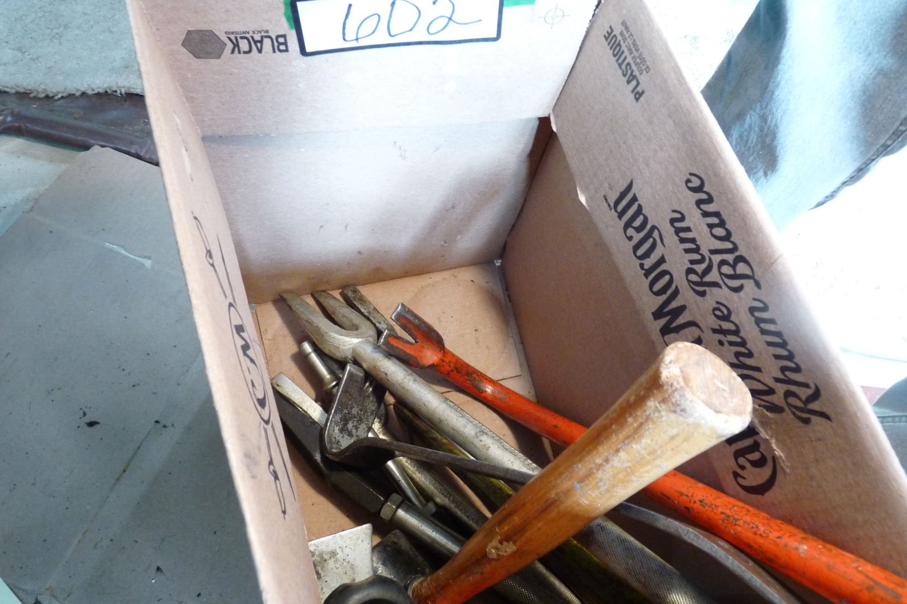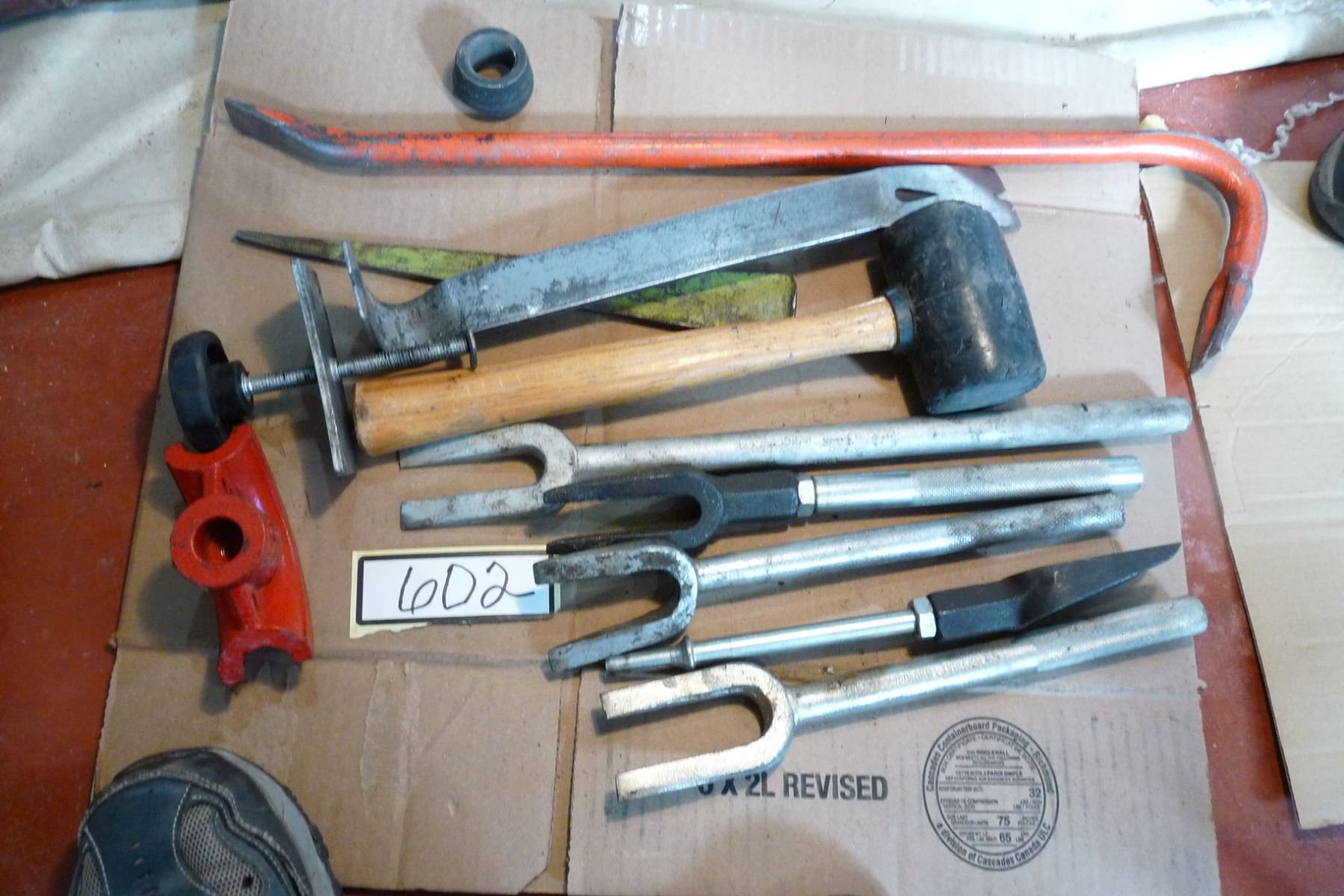 Tie rod tools, nail puller, rubber mallet misc. tools including wrecking bar