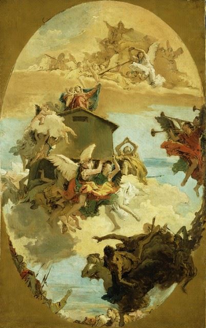 Artist: Tiepolo - Title: The Miracle of the Holy House of Loreto - Medium: Fine Art Reproduction Giclee on Canvas - Image Size: Approximately 32 inches x 20 inches - Unframed on Unstretched Canvas - Biography: Giovanni Battista Tiepolo (March 5, 1696 - March 27, 1770), also known as Giambattista (or Gianbattista) Tiepolo, was an Italian painter and printmaker from the Republic of Venice who painted in the Rococo style, considered important member of the 18th-century Venetian school. He was prolific, and worked not only in Italy, but also in Germany and Spain.