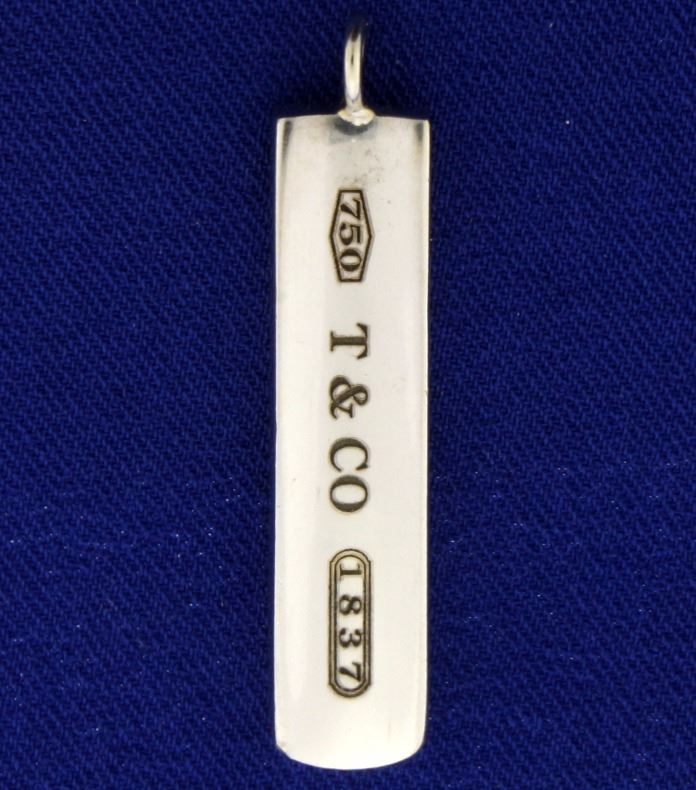 In 18k white gold, 1 5/8 inches long. 11.3g.