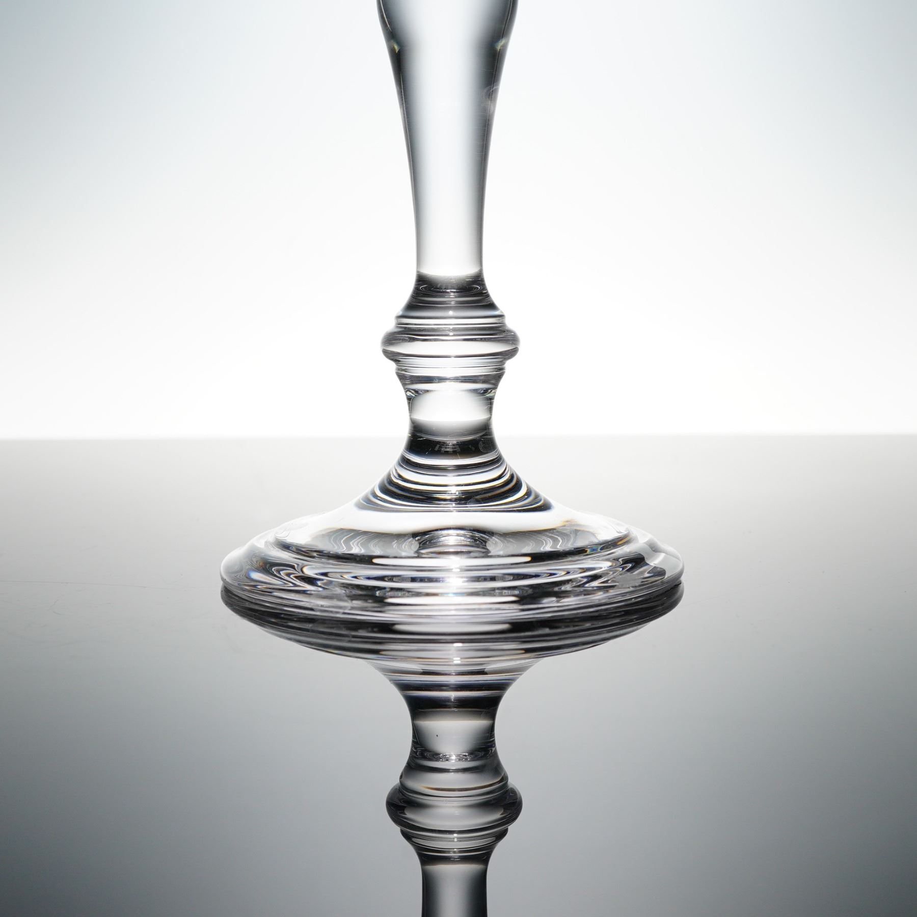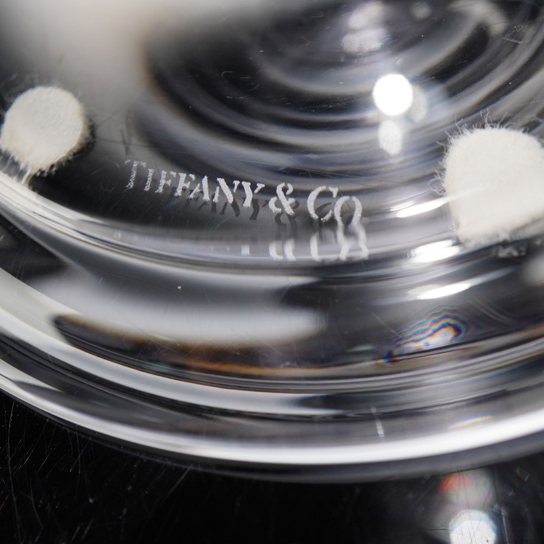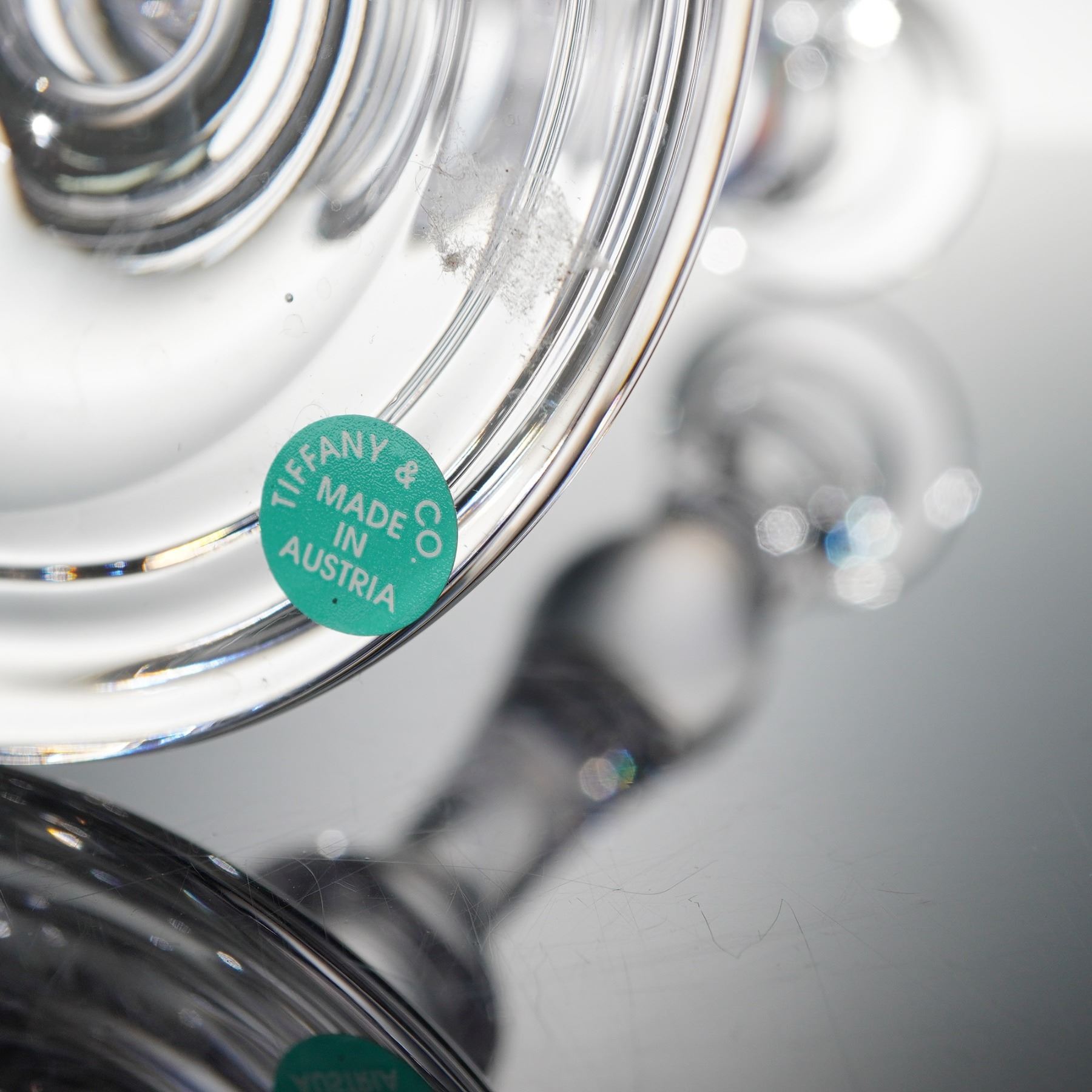 This elegant crystal candlestick by Tiffany & Co. exemplifies the brand's timeless sophistication and craftsmanship. Expertly made in Austria, the piece features beautifully balanced proportions and a gracefully tapered stem leading to a wide, circular base that offers stability and visual harmony. The clear crystal body is impeccably polished, capturing and refracting light with a subtle brilliance that enhances any setting. The underside bears the engraved Tiffany & Co. signature, while a classic Tiffany-blue sticker reads Made in Austria, affirming its authenticity and provenance.