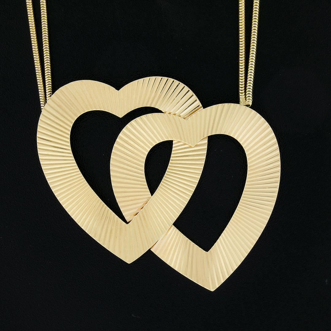 A solid 14k yellow gold pendant necklace by Tiffany & Co. 18 inch double snake link chain, 15.13 grams total weight, pendant measures 39.6x34.1mm.