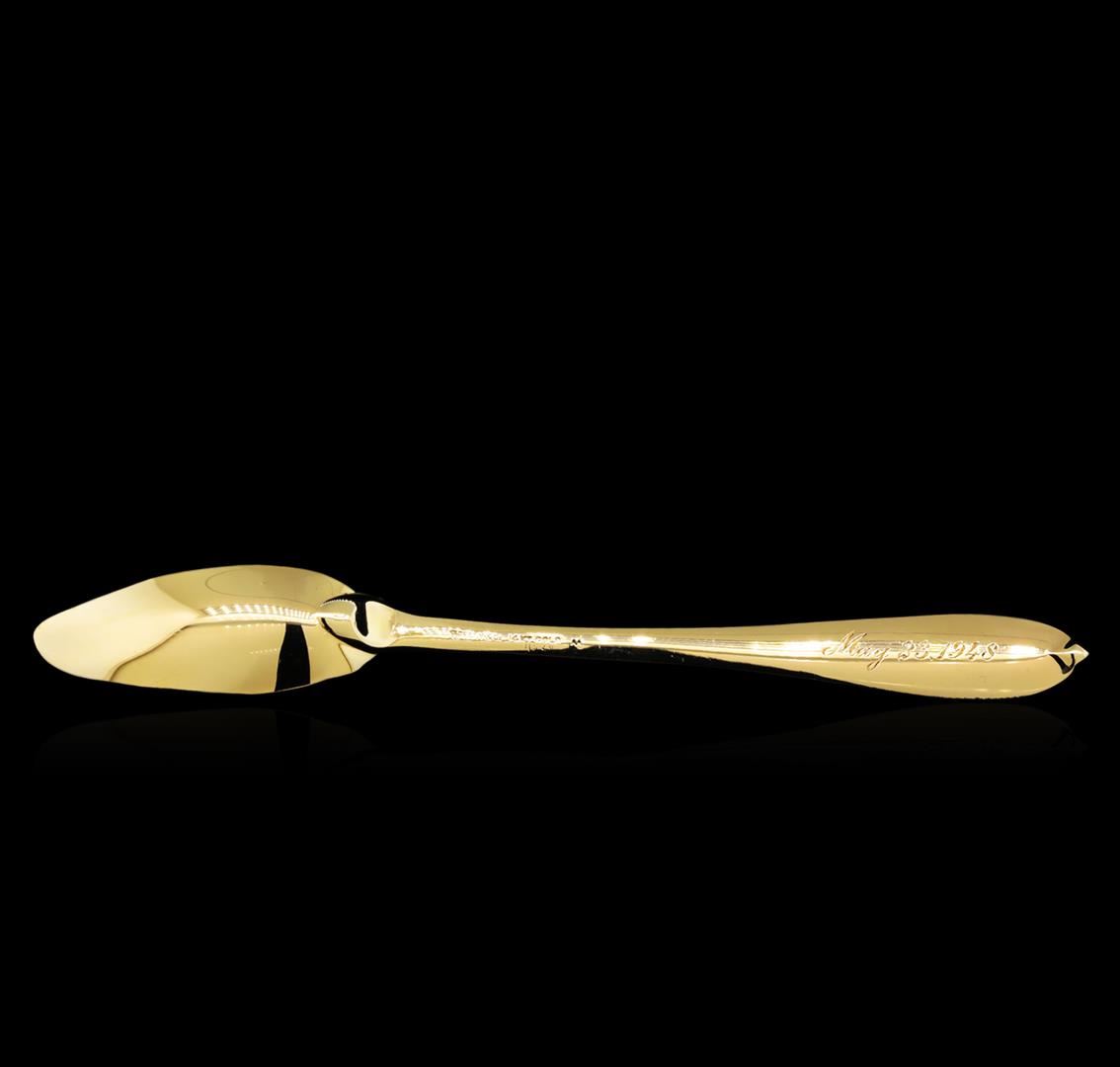 One Tiffany & Co. Spoon including: 14KT Yellow Gold with a total weight of 15.25 grams and markings of "Tiffany & Co. 14KT GOLD May 23, 1948"