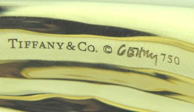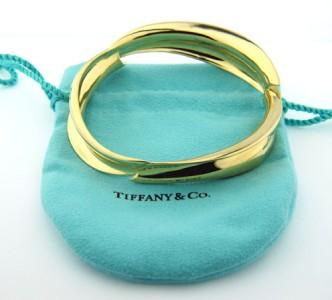 Tiffany & Co 18K Yellow Gold Bangle. The total weight of bangle is 51.5 grams. The size of Bangle is 57 x 57 mm, 2 mm thick, 10 mm wide.