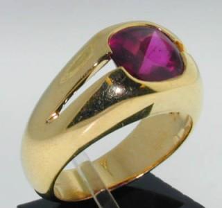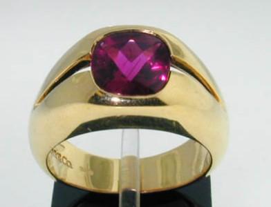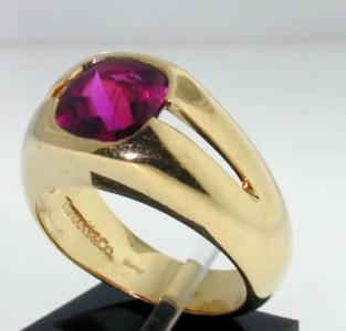 Tiffany & Co 18K Yellow Gold Rhodolite Ring. The weight of Ring is 11.2 grams. The size of rhodolite: 8x8 mm. The size of Ring: 6.75.