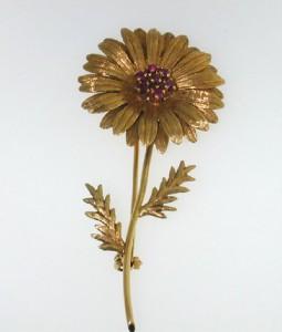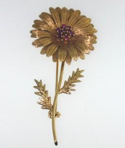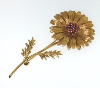 Tiffany & Co 18k Yellow Gold Ruby Pin.Pin's weight is 11.4 grams.Total weight of Ruby: 0.21 cts.The measurement of the Pin's: 2.25" long.