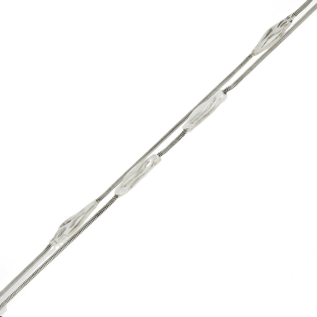 A solid silver section necklace by Tiffany & co. It weighs a total of 28.97 grams, measures 20mm wide, and measures 29.5 inches in length.