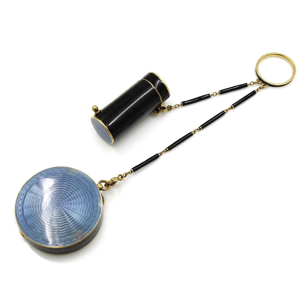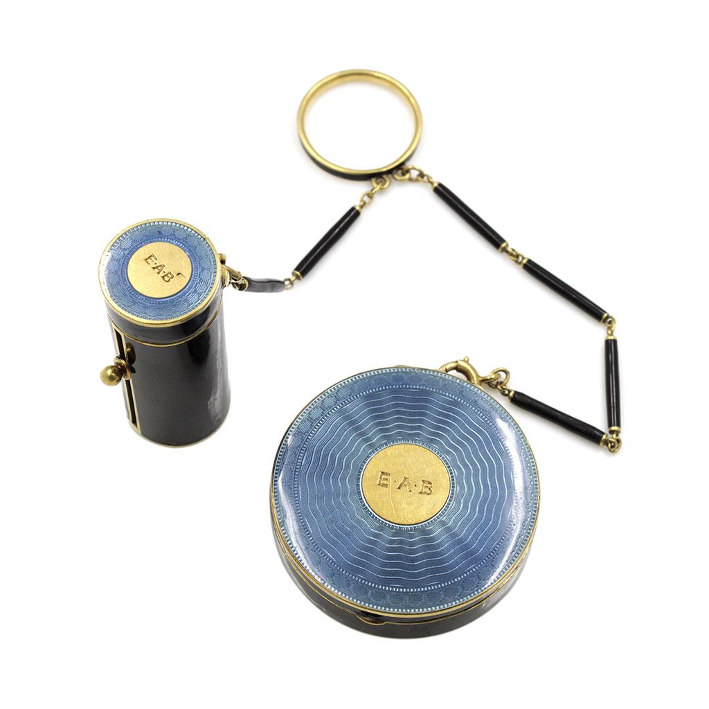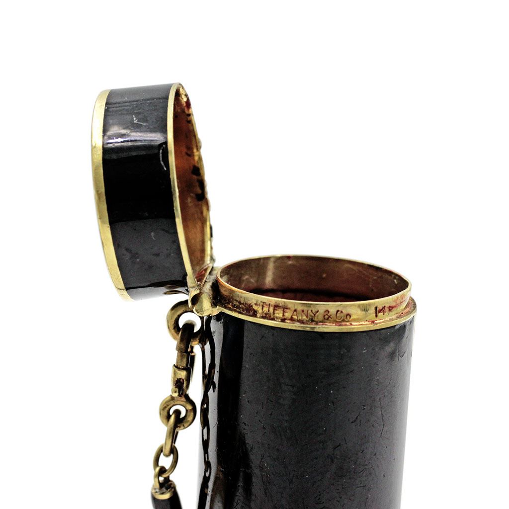 Tiffany & Co. Art Deco Enamel Compact and Lipstick Case 14k Gold. Signed Tiffany & Co