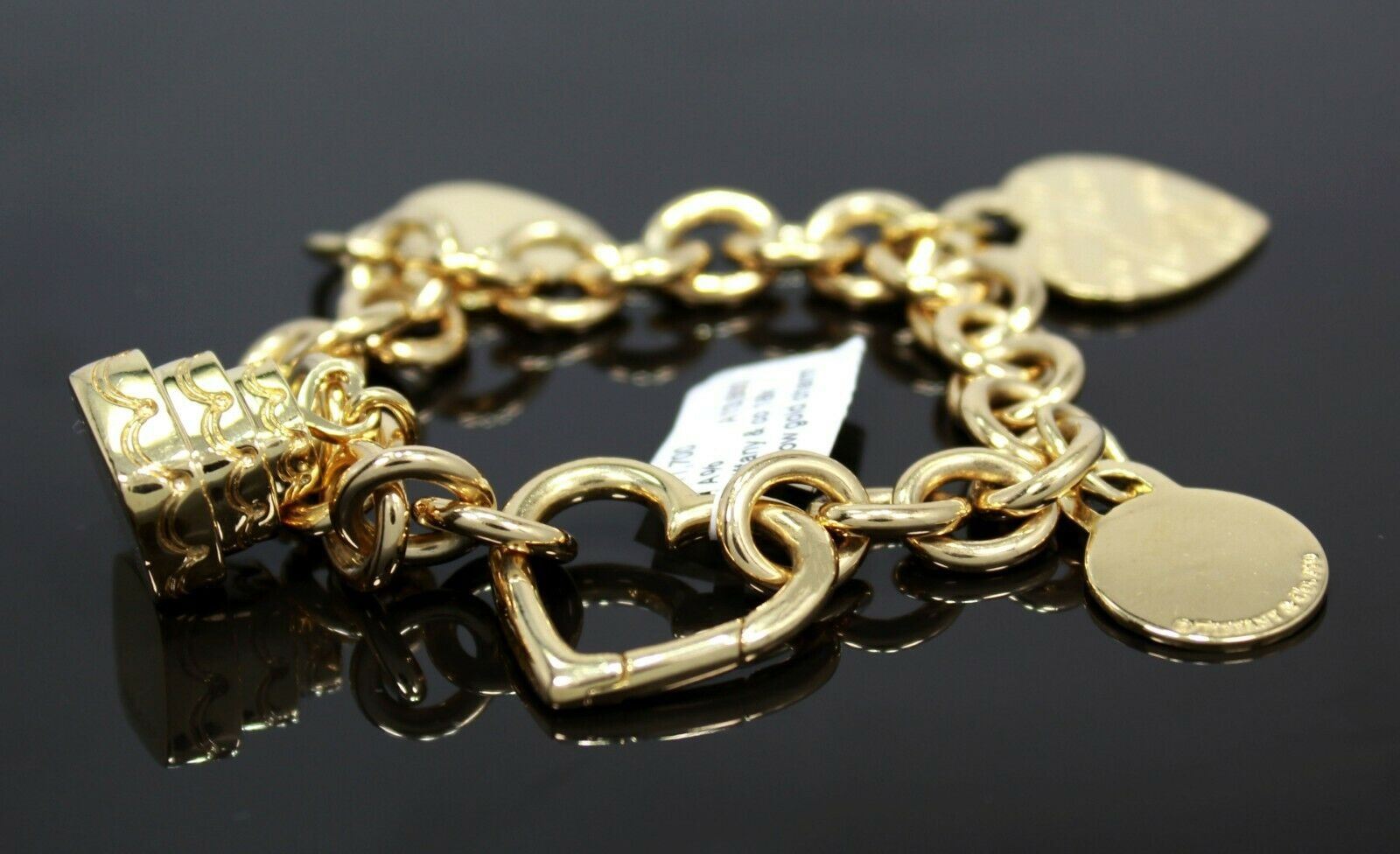 Description: Tiffany & Co. Heart Tag Charm 18K Yellow Gold Link Bracelet.