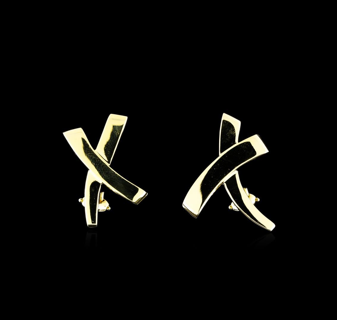 One Pair of Tiffany & Co. Earrings including: 18KT Yellow Gold with a total weight of 12.9 grams and markings of "Tiffany & Co. 750".