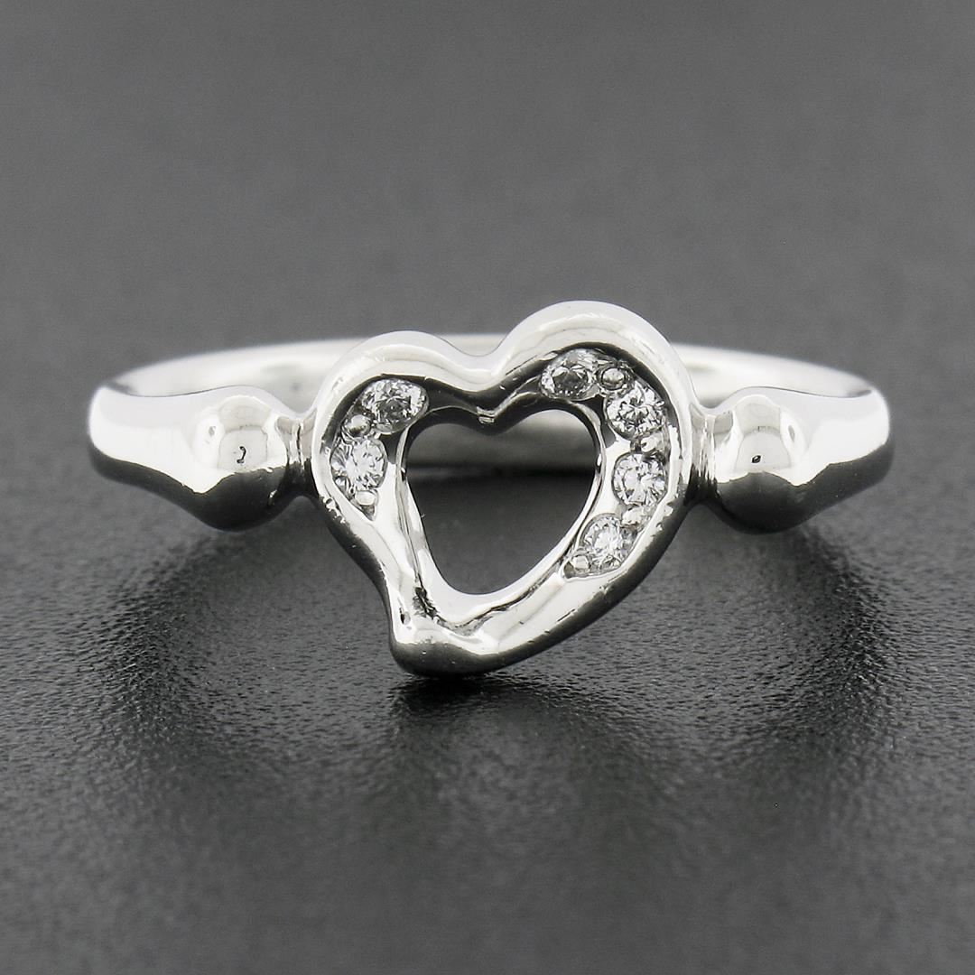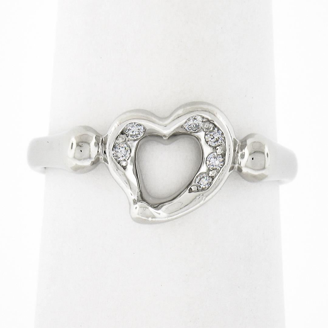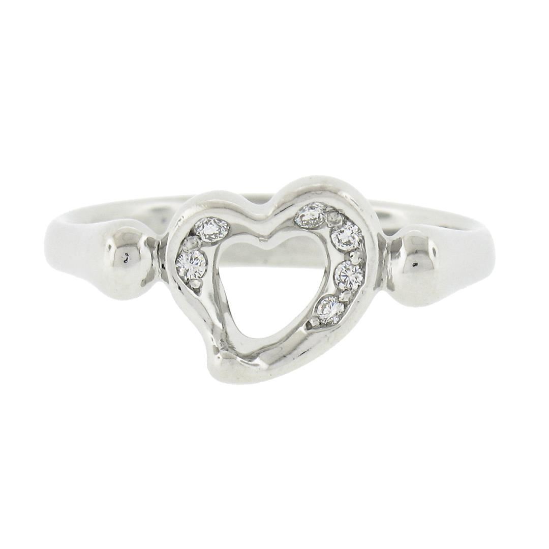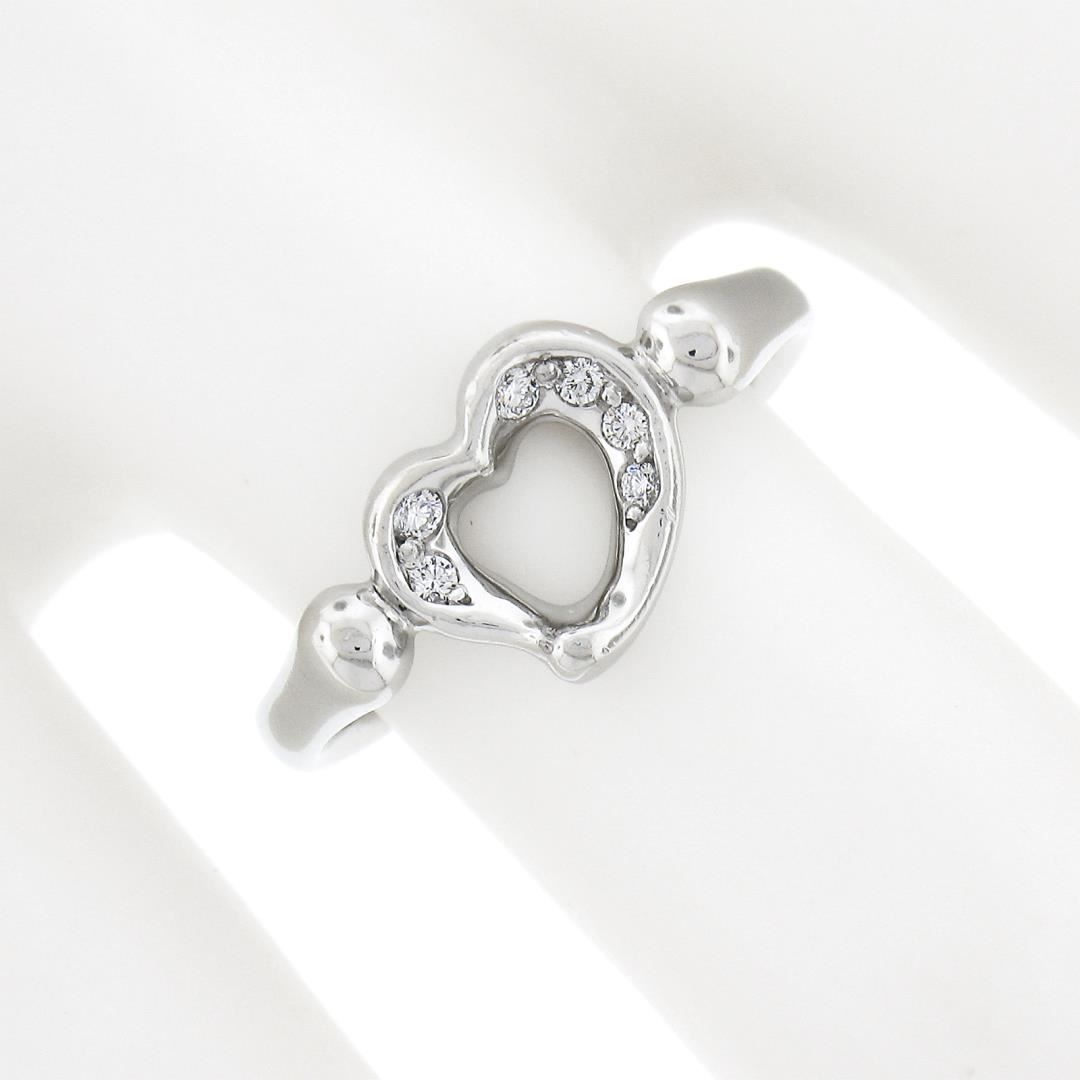 Tiffany & Co. Elsa Peretti Platinum Polished Open Heart Band Ring w/ Diamonds