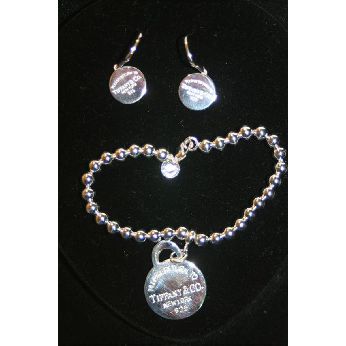 Tiffany & Co. Inspired, Silver Plated Bracelet with Engraved Tag: Please Return To iffany & Co. New York 925 and a set of Tiffany & Co. Earings. Also comes with signature Tiffany & Co. Gift Bag, Box and Felt Jewelry Pouch.