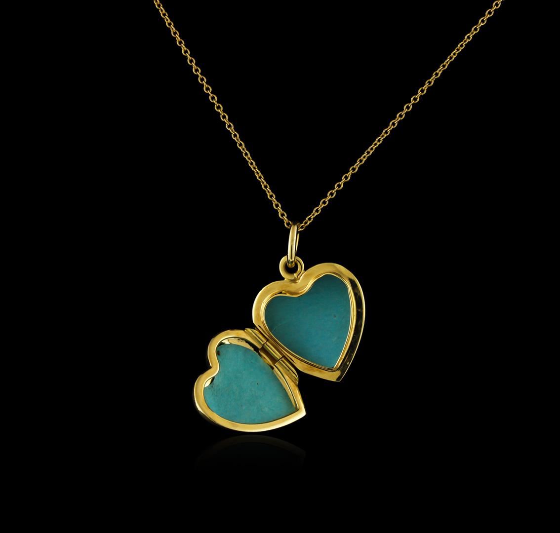 One Tiffany & Co Locket. Featuring: gold plated heart shaped locket with 18K yellow gold chain. Total weight of item: 6.60 grams. Comes with original Tiffany & Co cloth bag.