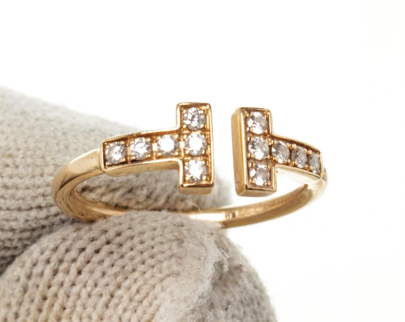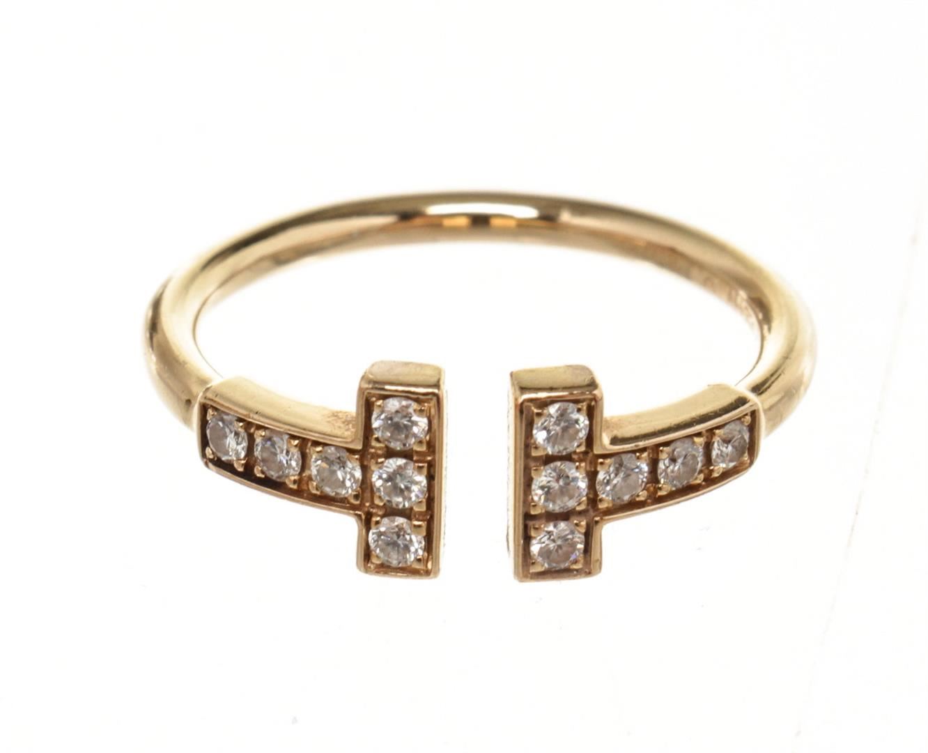 One Tiffany & Co Gold T Wire Diamond Ring 4.5. Item is sold AS-IS. All available information is listed in the description and shown in the photo. Tiffany and Co Gold T Wire Diamond Ring with gold-tone hardware. Size 4.5