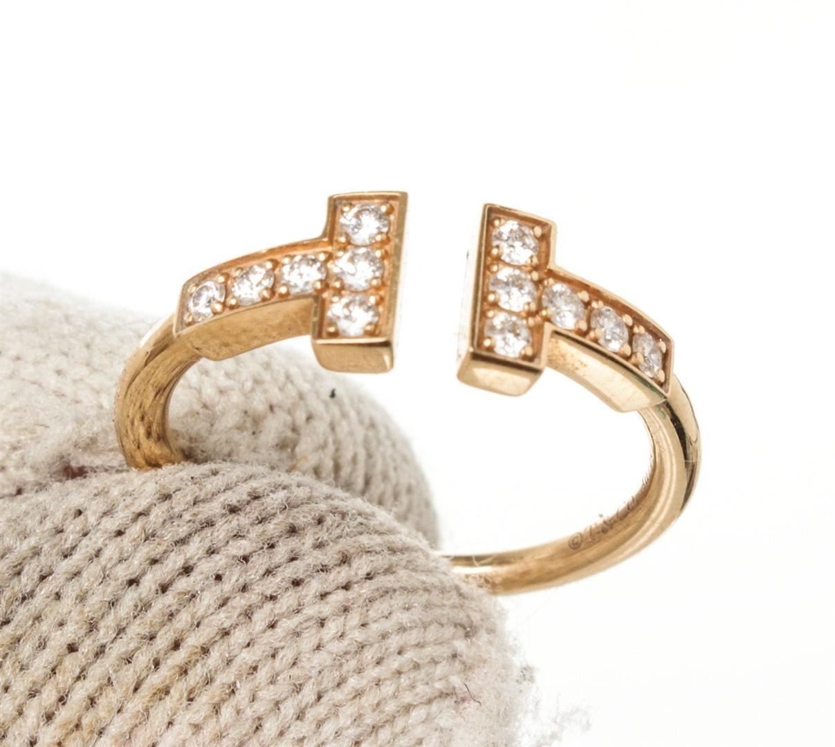 One Tiffany & Co Gold T Wire Diamond Ring 4.5. Item is sold AS-IS. All available information is listed in the description and shown in the photo. Tiffany and Co Gold T Wire Diamond Ring with gold-tone hardware. Size: 4.5