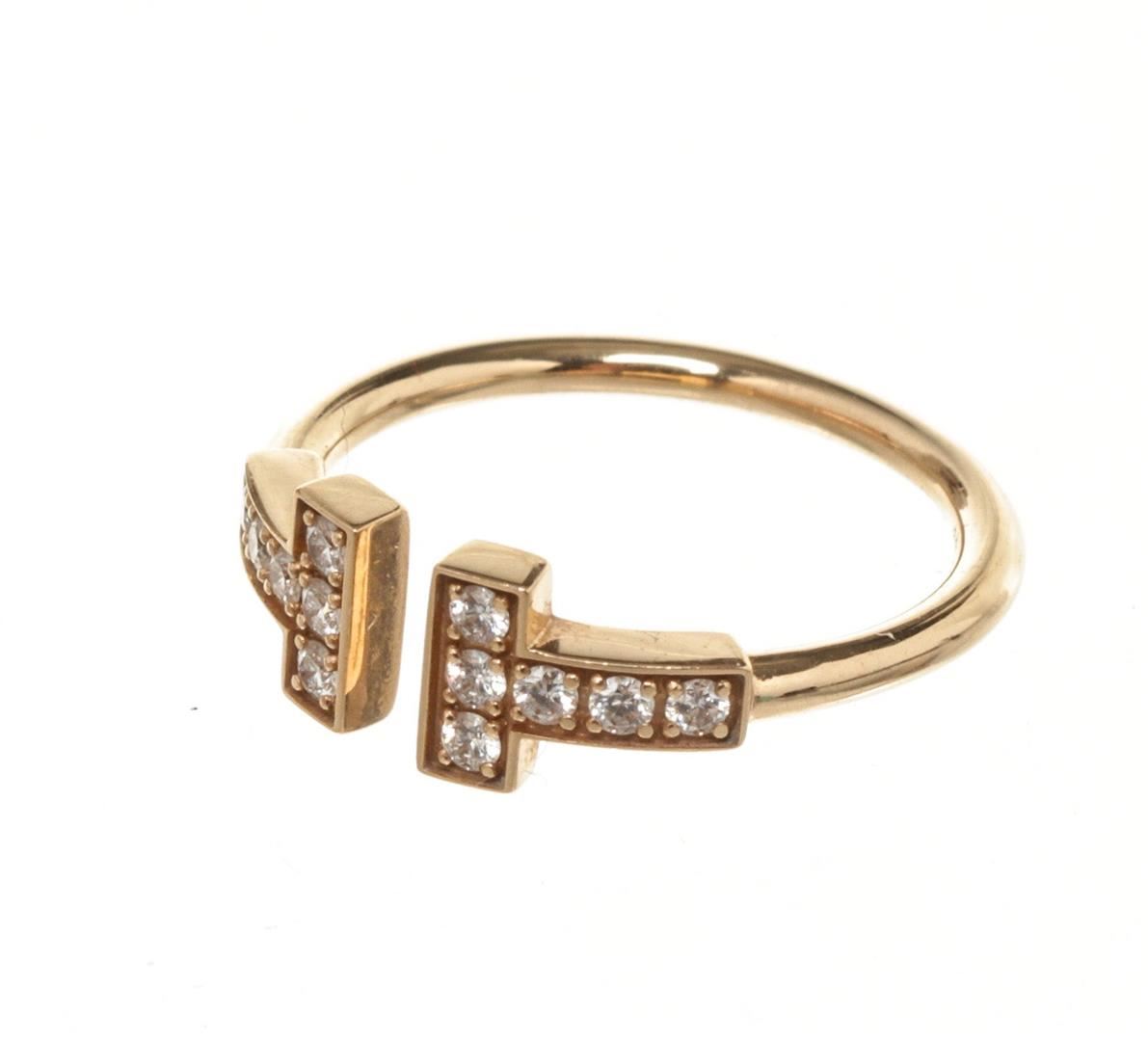 Tiffany and Co Gold T Wire Diamond Ring with gold-tone hardware.