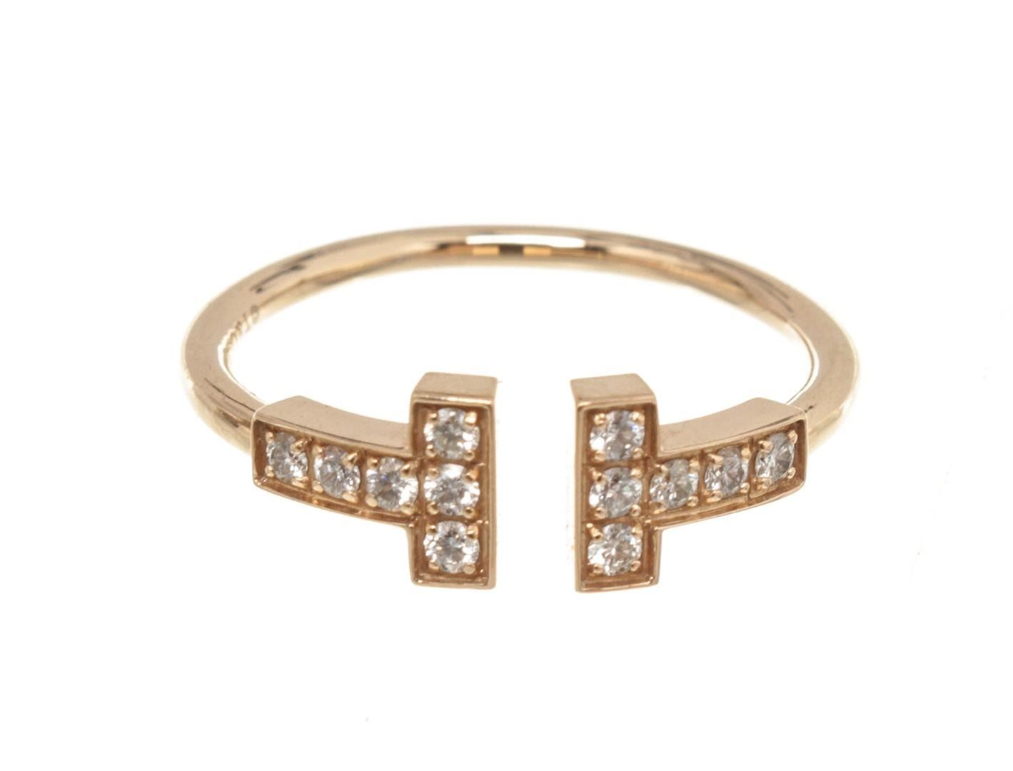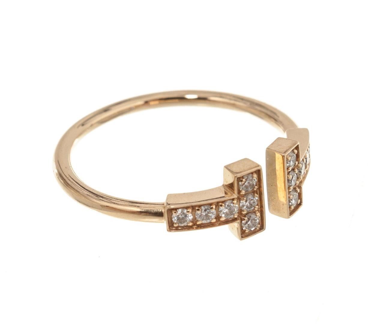Tiffany and Co Gold T Wire Diamond Ring with gold-tone hardware.