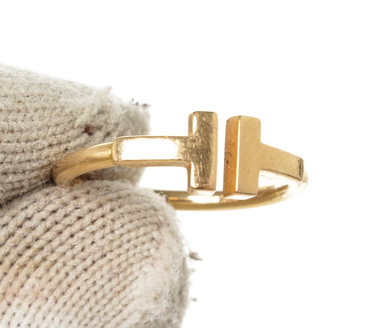 One Tiffany & Co Gold T Wire Ring. Item is sold AS-IS. Please check photos and descriptions for all available details. Tiffany and Co Gold T Wire Diamond Ring with gold-tone hardware. Size: 5.5